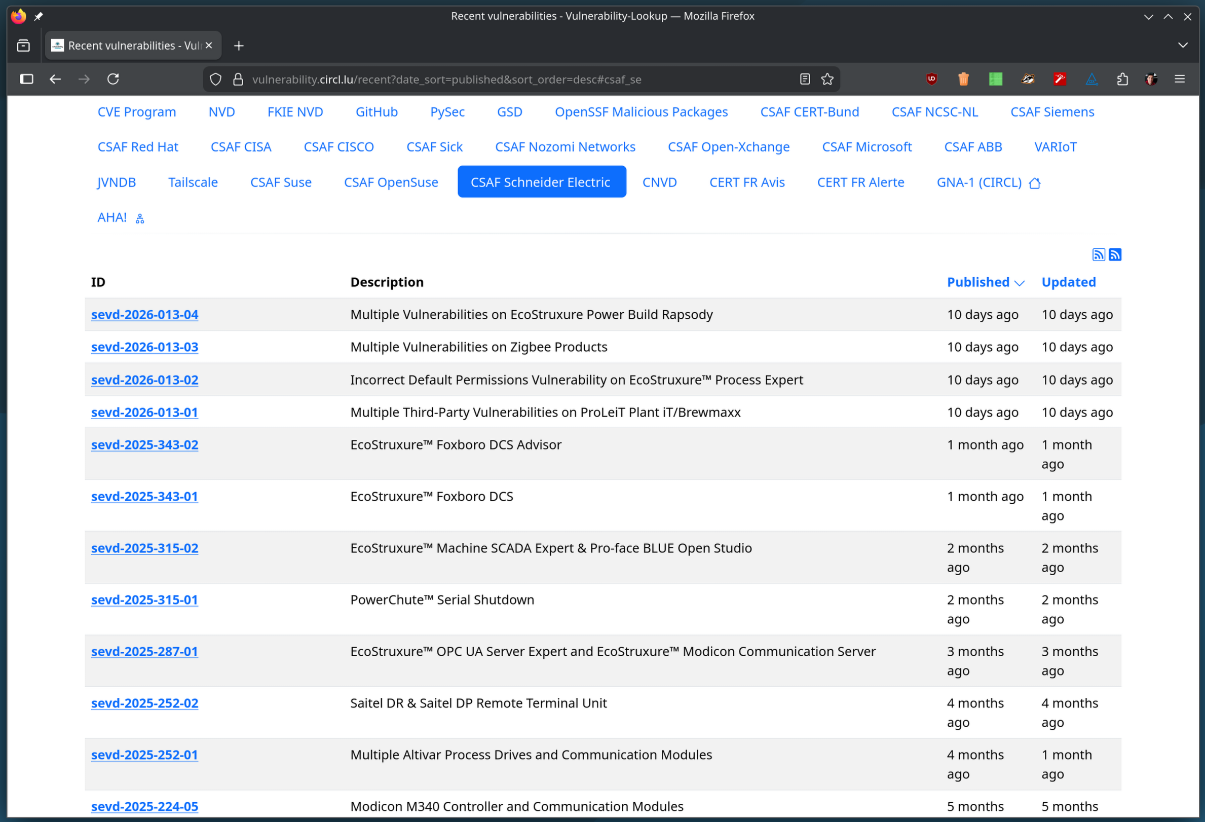 We have recently added a new CSAF feed for Schneider Electric. (e43fa03)