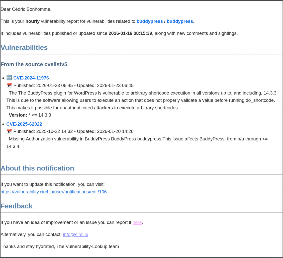 - chg: [notifications] Added the publication date in email notifications and a special icon for new vulnerabilities. Closes #299. 64bc631