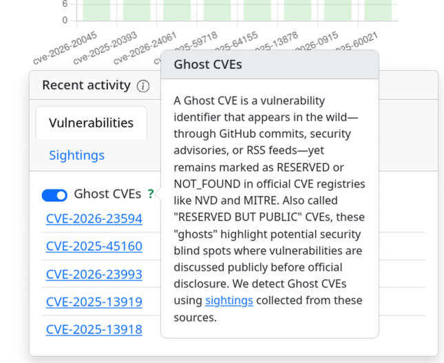 We now use the term Ghost CVE to refer to vulnerabilities observed in the wild via sightings that do not yet have a public CVE record.