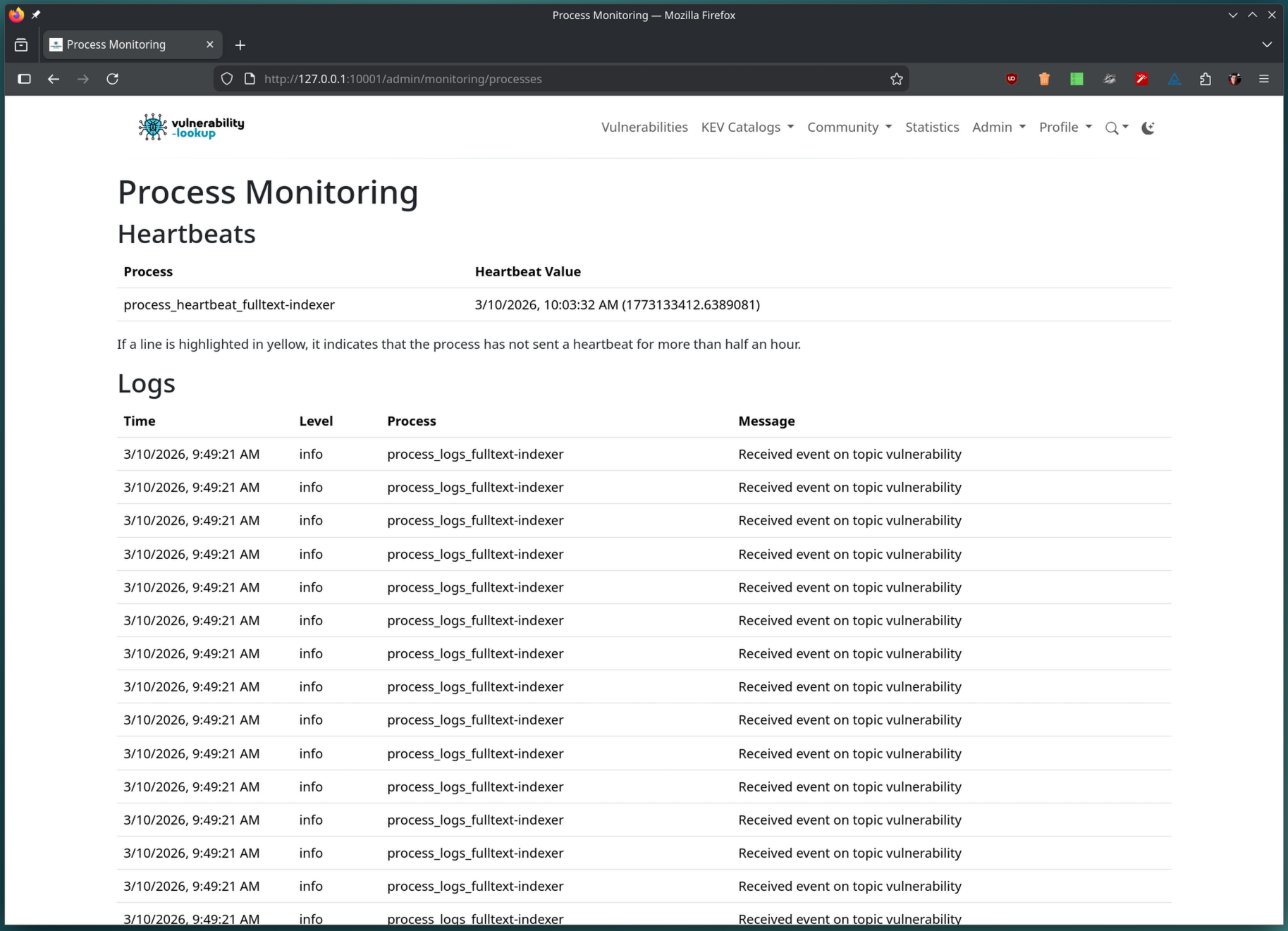 You can now enable full-text search on your Vulnerability-Lookup instance. This new feature relies on Meilisearch and the Vulnerability-Lookup event-stream. The indexer subscribes to the appropriate topic and receives all new and updated vulnerabilities pushed through the Valkey event-stream. This is the event-stream used by FediVuln in order to push notifications from a Vulnerability-Lookup instance to the Fediverse.