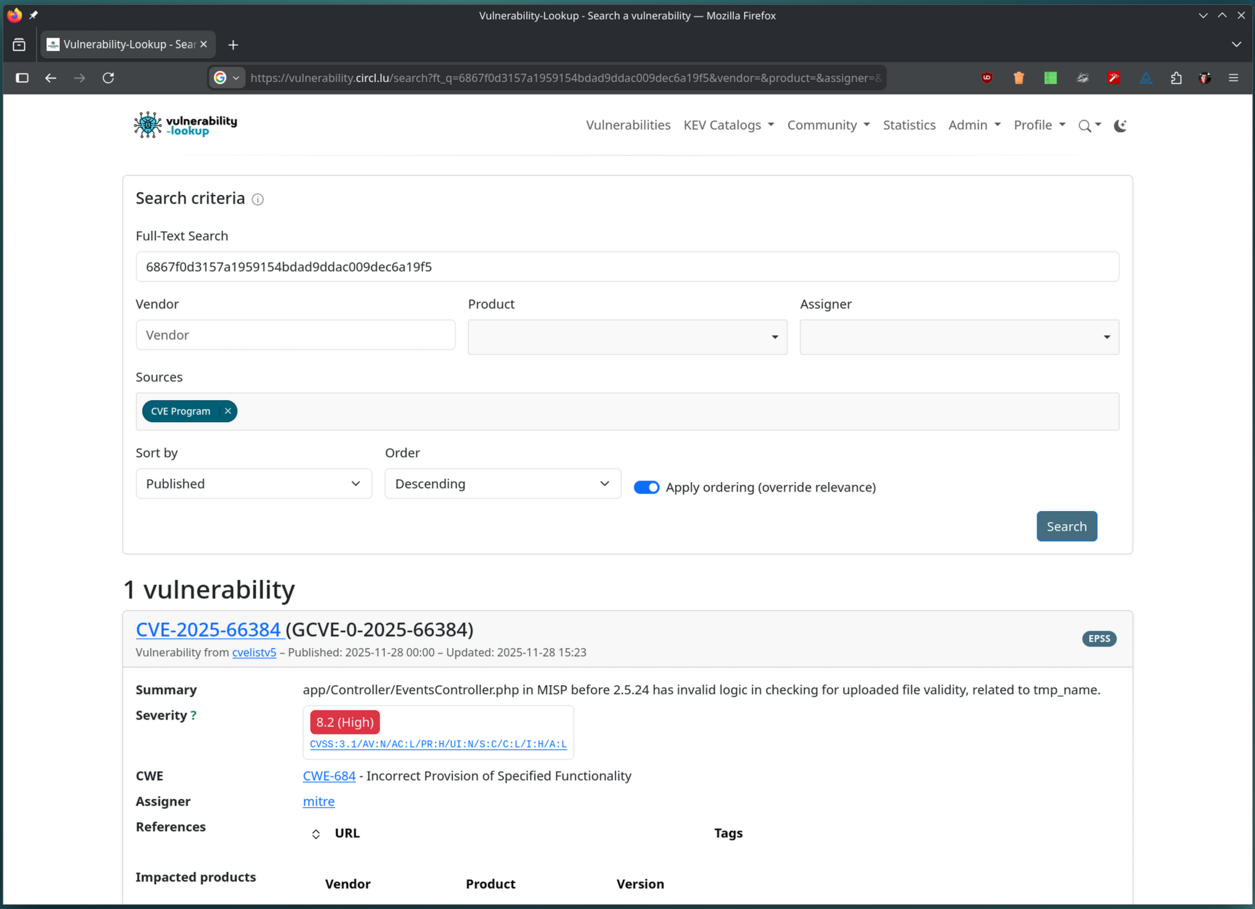 https://github.com/vulnerability-lookup/vulnerability-lookup/issues/